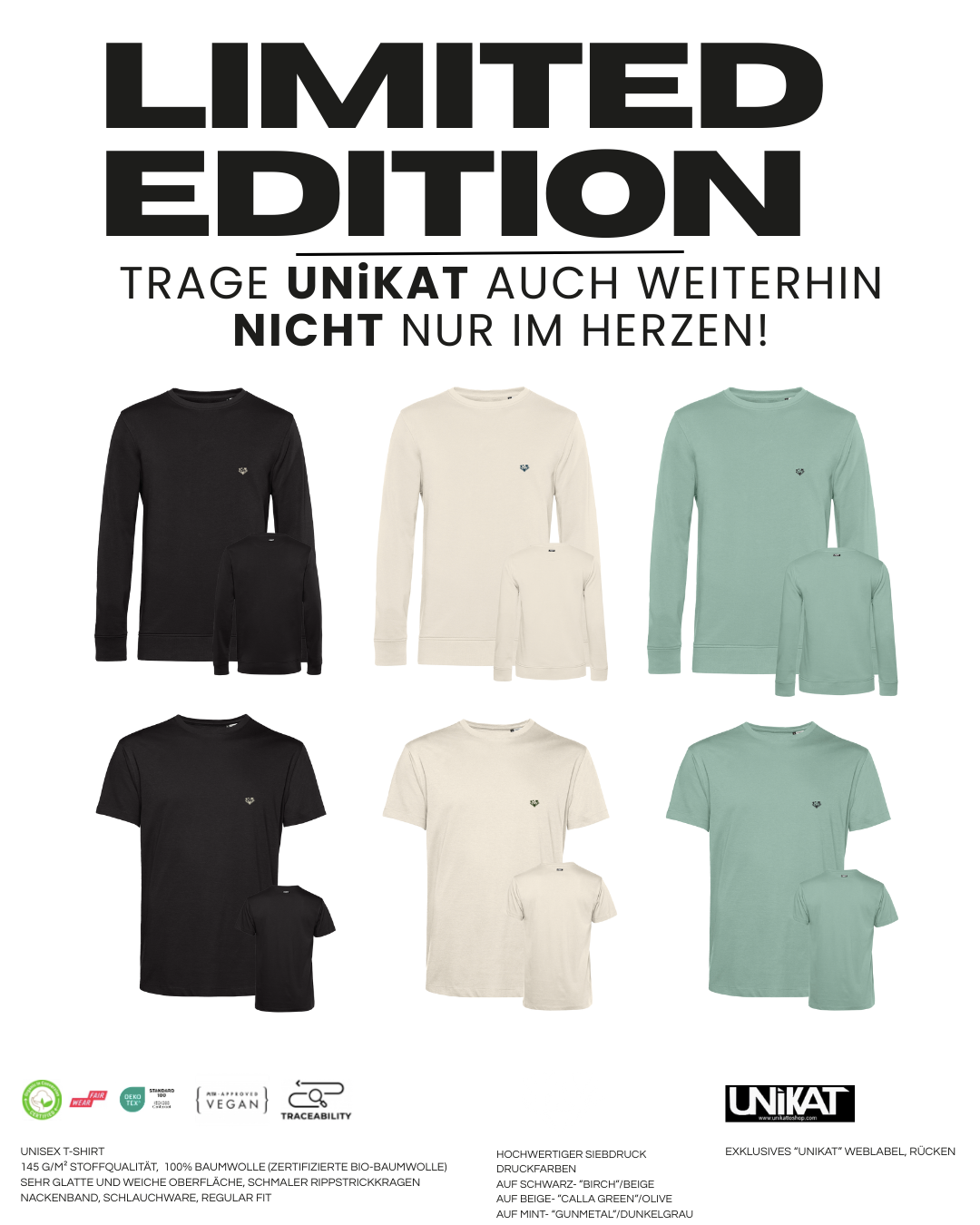 vielen Dank für eure Bestellungen unserer UNIKAT LIMITED Serie – und dafür, dass ihr Teil unserer Reise seid. Euer Vertrauen bedeutet uns sehr viel.